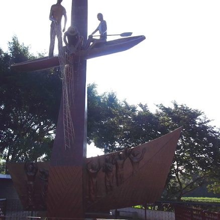 Como esqueci de levar o meu e não iria comprar outro, optei por não fazer o caminho meditando, somente tirei as fotos que queria. O percurso é composto por 20 cenários com um total de 128 esculturas. O espaço tem bancos que ficam em frente a cada escultura e é um local bonito, agradável e silencioso, próprio para um voltar para si mesmo e para os mistérios do rosário. No final do passeio há a Estação Porto e o Porto Itaguaçu.