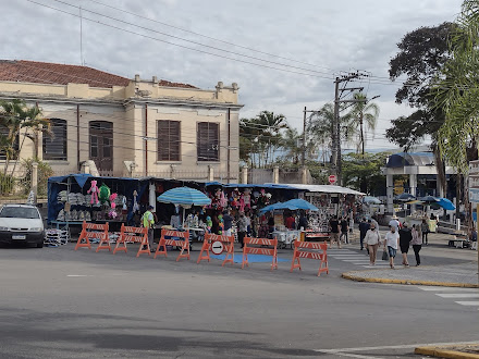 A igreja foi construída em 1918. É pequena e confortável. Como estava em um hotel a 2 minutos de lá, assisti à missa na manhã de domingo. Fica em frente à rodoviária e de uma das entradas da feira livre. Lá acontece uma das mais tradicionais festas religiosas do Vale do Paraíba. A igreja tem o nome do padroeiro da cidade: São Benedito.