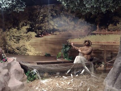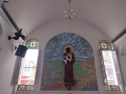 Fui ao Presépio. A entrada é gratuita. Aproveitei para conhecer o Centro de Apoio ao Romeiro. O pessoal da cidade diz que é um Shopping. Quando o dono do hotel falou que tinha um Shopping lá, eu paulistana, já pensei em um shopping como os de SP. Depois que entendi que aquele espaço com uma praça de alimentação variada, com alguns boxes de lojinhas que vendem produtos uns iguais aos outros, sem variedade, é chamado de Shopping. Não gostei porque esperava uma variedade de produtos. Por um lado foi bom porque visitei tudo em 10 minutos e não comprei nada a não ser minha janta.