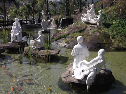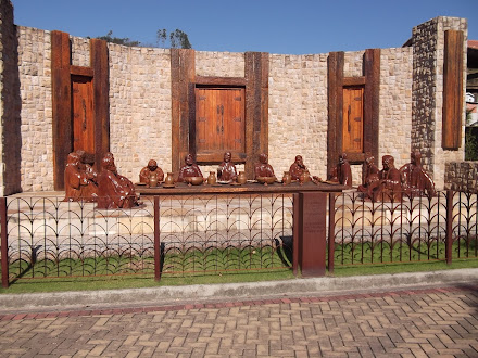 Como esqueci de levar o meu e não iria comprar outro, optei por não fazer o caminho meditando, somente tirei as fotos que queria. O percurso é composto por 20 cenários com um total de 128 esculturas. O espaço tem bancos que ficam em frente a cada escultura e é um local bonito, agradável e silencioso, próprio para um voltar para si mesmo e para os mistérios do rosário. No final do passeio há a Estação Porto e o Porto Itaguaçu.