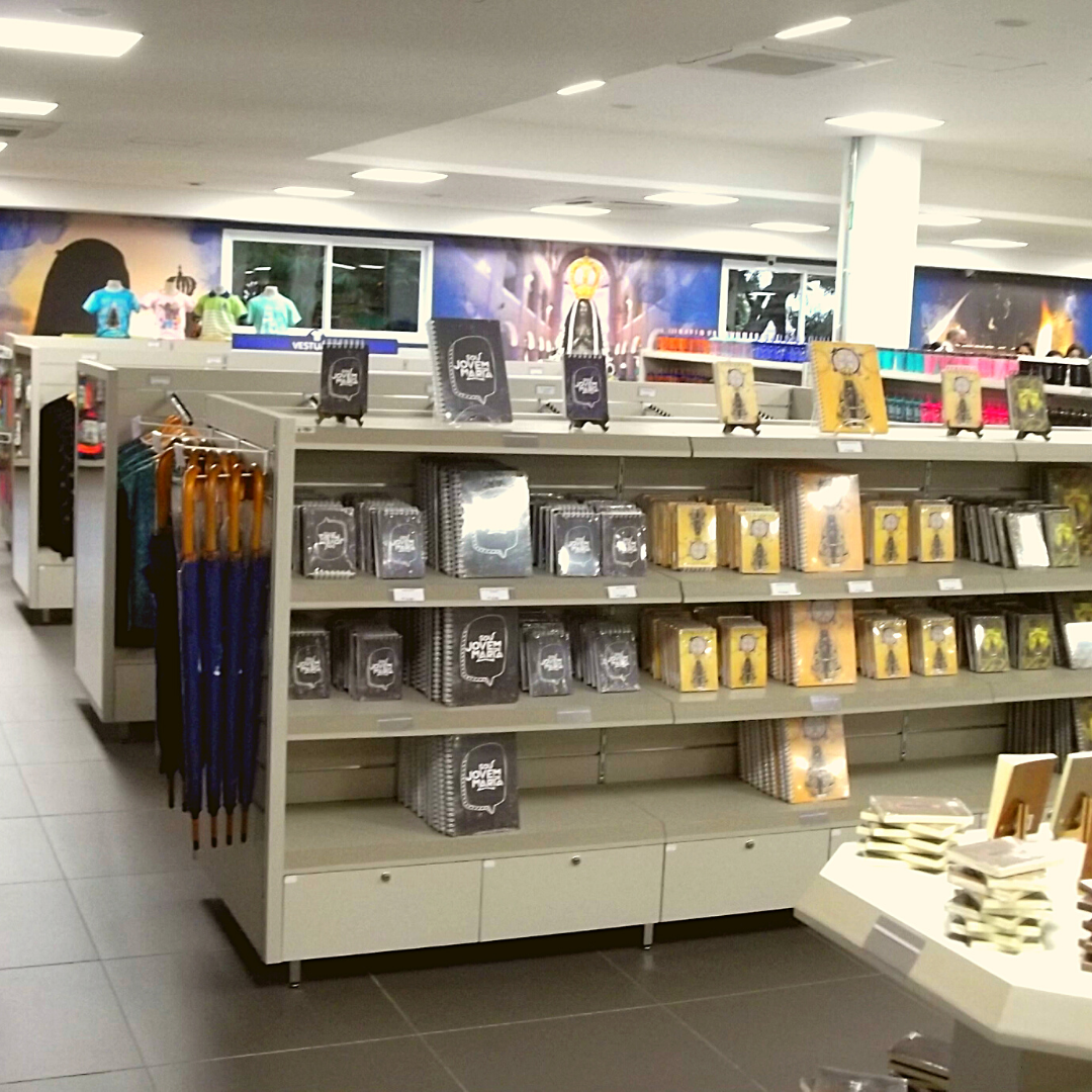 Estão estrategicamente espalhadas por todo o Santuário e também na Basílica Menor. Vende produtos próprios que não são localizados na Feira Livre da cidade de Aparecida, dentre eles, as velas a serem queimadas na Capela das Velas, vestuário, chaveiros, livros, CD’s, imagens, terços e lembranças da cidade e da Padroeira. Você pode adquirir os produtos no site. Entregam em todo o Brasil. https://www.lojasantuarionacional.com.br/