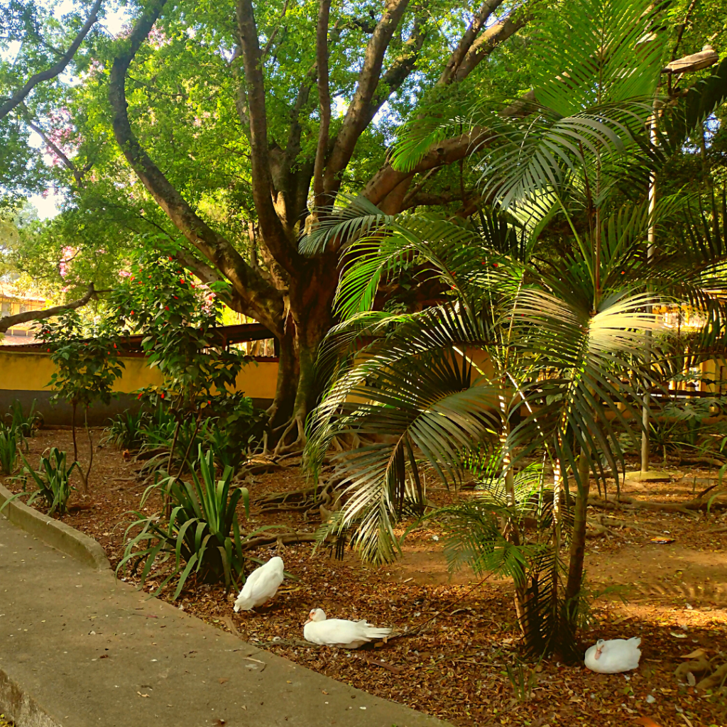 E, para quem conhece, os galos brigam por qualquer motivo. É olhar para eles que vão pra cima do galo que olhou. É briga atrás de briga. Para descansar ali é difícil. Não estou reclamando porque eu gostei, achei bem diferente de todos os parques que frequentei, mas confesso que não consegui deitar e tirar um cochilo, porque os galos dominaram o local que eu havia escolhido e estavam brigando toda hora.