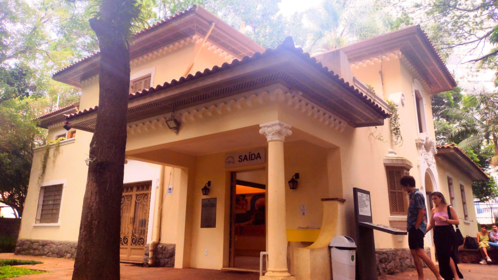 Primeiro, o jardim do museu é muito bonito e já comecei tirando fotos dali… na verdade, comecei tirando fotos da avenida que achei super arborizada. Do lado de fora, tem abelhas sem ferrão e a casa que abriga a exposição é bem bonita e simpática.